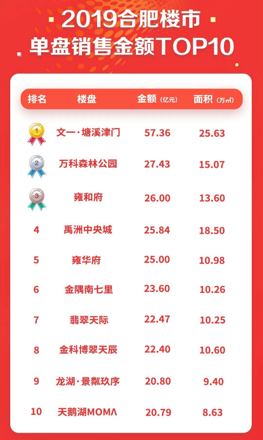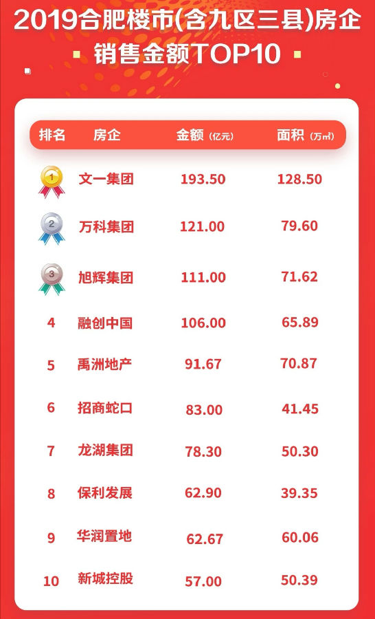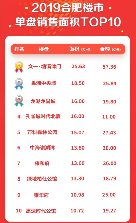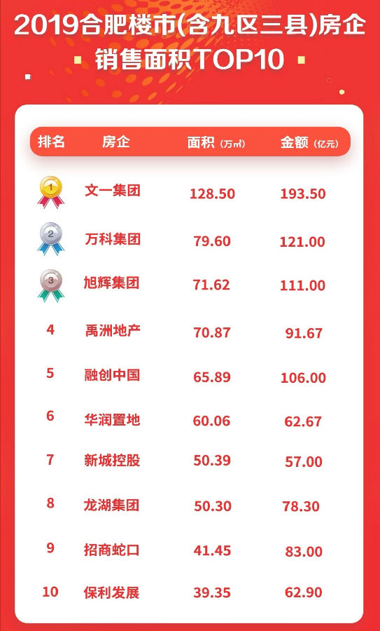 2019年12月31日晚,合肥楼市重磅发布2019合肥楼市房企、楼盘销售系列榜单,文一集团荣登2019合肥楼市(含九区三县)房企销售金额TOP10、销售套数TOP10、销售面积TOP10三项冠军宝座;文一·塘溪津门实力摘得2019年度合肥楼市单盘销售金额TOP10,单盘销售套数TOP10,单盘销售面积TOP10三大榜单冠军荣誉。