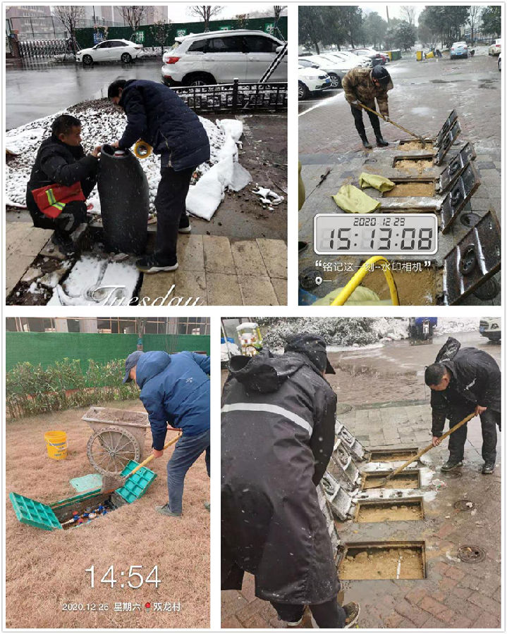 为保障极寒天气供水、消防管道的防冻工作。各项目牢固树立安全第一预防为主的思想,提前准备好应急处理的物品与器具并落实专人保管,确保随时可投入使用。在恶劣天气来临前组织人员做好供水管网、消防管线、各种设备防冻防裂措施,注意楼栋走廊门窗和水井关闭,防止水管冻裂。