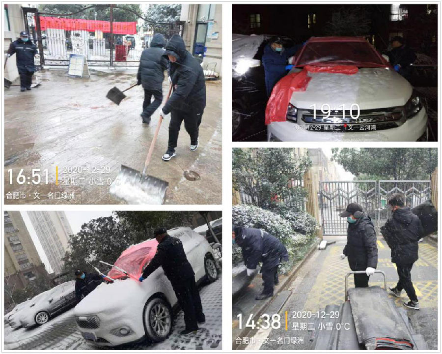 12月29日下午,合肥市气象台变更发布寒潮黄色预警信号,12小时内降雪量将达4毫米以上,一场大雪如期而至。受降雪影响,物业各园区内道路积雪、结冰,给人们出行带来不便。雪情就是命令,为保证各园区道路畅通和出行安全,文一滨江物业各项目全力开展扫雪除冰行动。