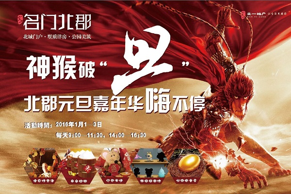 时光荏苒,岁月如梭。素什锦年,稍纵即逝,年终岁末,元旦即将来临,2016年1月1日,文一·名门北郡邀您一同开启“元旦嘉年华”! 神猴破“旦”,丰厚暖心精彩大礼,为您和家人开启一段不一样的精彩元旦之旅!