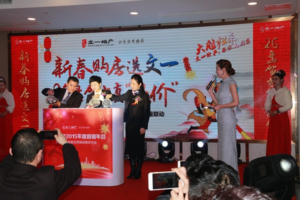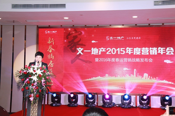 2016年1月28日,文一地产2015营销年会暨2016春运营销战略发布会在文一戴斯大饭店盛大召开,合肥市各主流媒体、代理公司、各活动公司代表纷纷到场助阵。文一地产总裁韦勇、副董事长薛英姿、副总裁邱胜华、销售公司总经理赵世桂等出席了此次盛会。