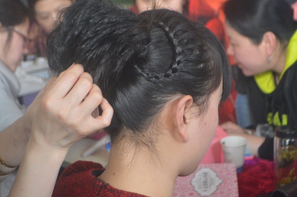在另外一旁是现场造型师为女性编制时尚发型,她充分发挥着自己的创意,只为您编造出最美发型。活动现场欢声笑语,异常热闹。很多女性表示,平时生活中很少打扮,因为时间不够,这次要感谢文一云河湾为她们带来这个充满意义的活动,让她们度过了一个愉快的下午。一位家长说:“平时也很喜欢帮女儿梳辫子,但是比较简单,这次我来跟发型师学了几招,回去了以后可以帮我女儿编”。