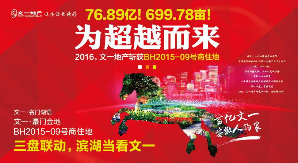 据悉,BH2015—09号地块将会是文一地产在滨湖打造的第三个高端项目,继文一·名门湖语和第五代产品文一·豪门金地之后,滨湖BH2015-09号地块刷新合肥新总价“地王”,拉开合肥楼市华丽篇章新序幕。