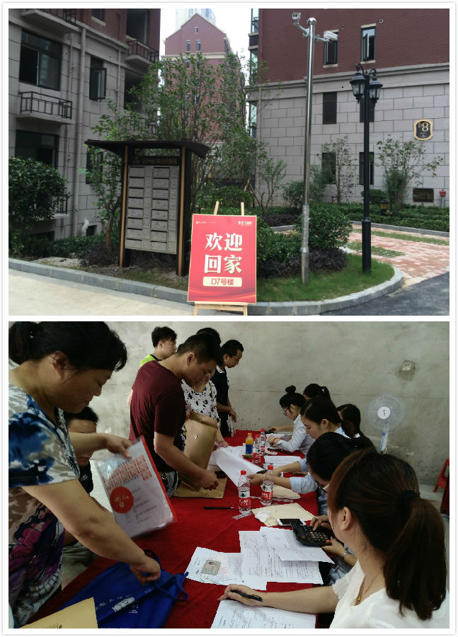 7月10日,位于合肥市庐阳区清源路与灯歌路交口的文一·名门湖畔小区,一期288位洋房业主迎来了最激动而幸福的日子,首期八栋洋房盛大交付!不到早上八点,众多业主们已和家人来到现场,一睹新家园的风采,殷切地等待拿房!交房第一天,庐阳置业所有工作人员早已准备完毕,七点前所有岗位人员已整齐划一全部到岗,满面笑容恭迎业主们前来办理交付手续。