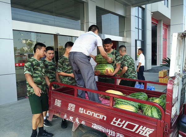 7月27日,八一建军节来临之际,文一集团六安置业公司来到六安经济技术开发区消防大队慰问消防官兵,在炎炎夏日中送去西瓜、矿泉水等防暑降温慰问品,表达了对人民子弟兵的崇高敬意。开发区消防大队教导员王长春、大队长陈学凯等领导对公司一行表示欢迎,并介绍了当前消防工作的基本情况,同时感谢文一集团长期以来对消防事业的支持和关心。