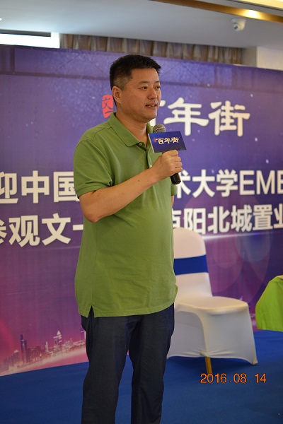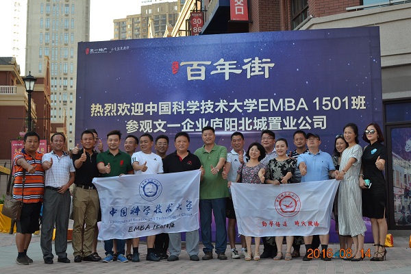 2016年8月14日下午,位于庐阳区四里河与清源路交口的文一·百年街营销中心人气鼎沸,现场迎来了中国科学技术大学EMBA1501班老师及同学们莅临参观文一企业庐阳北城置业公司。