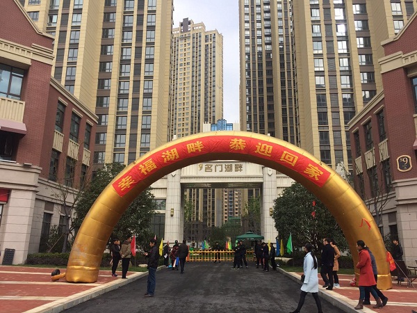 11月10日,在庐阳区四里河清源路与灯歌路交口,现场彩旗飘扬、人流攒动,821户文一·名门湖畔业主喜迎高层住宅暨首期商业交房!交付首日不到八点,众多客户已难掩激动心情,早早来到项目现场,本次交付区域是位于高层区的G1#、G2#、G3#、G5#、G6#楼669户住户及八栋商业152户沿街商铺业主。