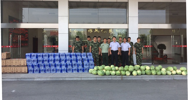 7月25日,为喜迎八一建军节,文一地产六安置业公司在总经理赵之千的带领下来到六安经济技术开发区消防大队慰问消防官兵,在炎炎夏日中送去西瓜、矿泉水等防暑降温慰问品,以示对人民子弟兵的深情厚谊,置业公司向开发区消防大队全体官兵致以节日的问候和良好的祝愿。