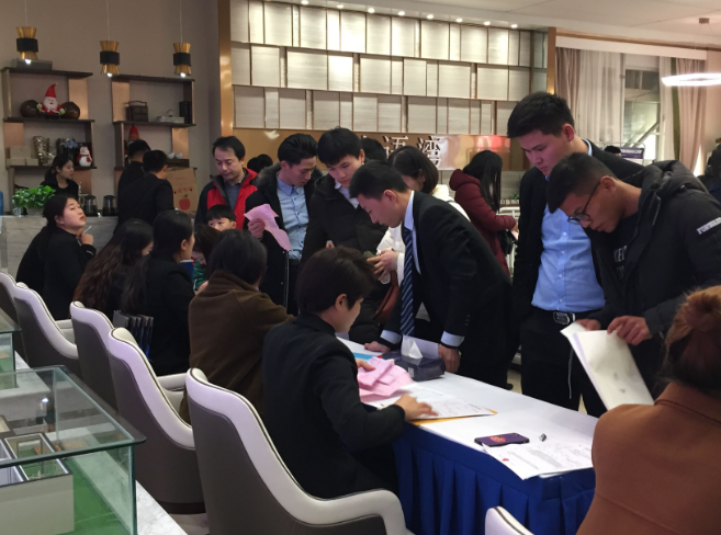 开盘活动即将开始,客户们紧张有序地签到进入等候区,屏息等待着幸运的降临。