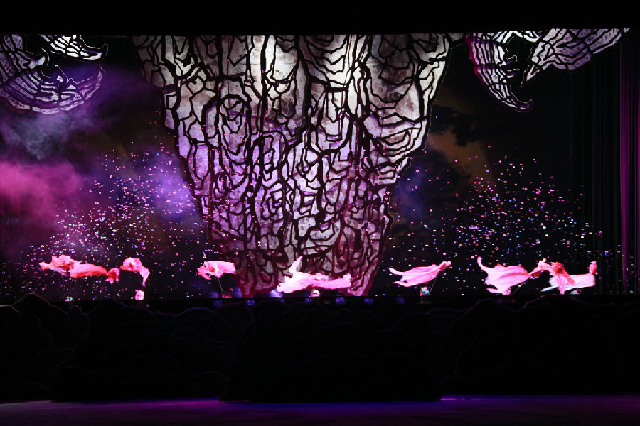 赵总精彩的致辞过后,非遗经典川北大木偶戏——《龙门传说》正式拉开了序幕,根据“鲤鱼跳龙门”这个广为流传的民间传说打造,融合音乐剧的时代特点,更采用当下舞台声光电的顶尖黑科技,为在场的来宾们呈现了一场关于坚守梦想、追寻梦想的震撼故事。