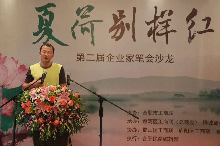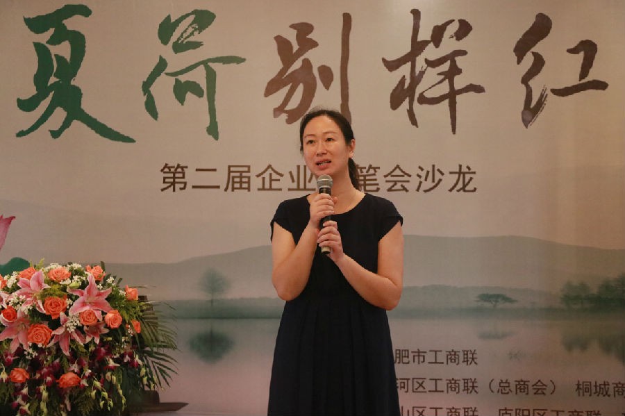 本次企业家笔会沙龙的第一个环节,是对4月3日“第一届企业家笔会沙龙”的回顾与总结。包河区区委统战部副部长、区工商联党组书记史道云对本次活动做了简短又隆重的欢迎致辞:本次的企业家笔会沙龙,以七月的“夏荷”为主题,天气炎热恰对应着城市建设的如火如荼,而夏荷的清新,又象征着在火热的城市建设中,那一抹始终亮眼的品质追求。精彩的开场致辞赢得现场阵阵掌声。