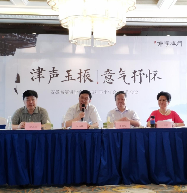 口若悬河,背后是丰富的人生阅历与精深的知识储备;挥斥方遒,源于自信的彰显与风采的激扬!演讲,作为文化传播与社会沟通中颇具代表性的艺术门类,越来越多地受到社会各界的关注与青睐。而演讲活动的宣传与普及,离不开社会团体的组织与开展, 8月5日,安徽省演讲学会2018年下半年会长工作会议在巢湖之滨超千亩文旅巨著——文一·塘溪津门如期举行,会议由安徽省演讲学会执行会长卜幼凡先生主持。