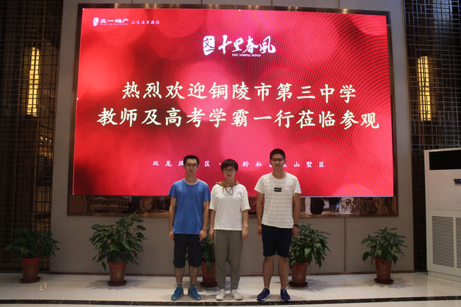 文一·十里春风秉承文一集团“砖瓦精神,奉献社会”的企业使命,继高考前夕邀请安徽经视《第一时间》主持人、“伟伟说高考”栏目负责人张伟伟与2015年搜狐网“最具人气高考志愿规划师”夏东平老师做客营销中心举办考前志愿填报的专题公益讲座,以及大型高考祈福活动后,于8月7日再次请来三名高考学霸座谈分享学习及考试心得,他们分别是:安徽省理科第五名,被清华大学录取的夏羿同学;铜陵市文科状元被上海复旦大学录取的李旻同学;以及被南京大学录取的孔锐同学。