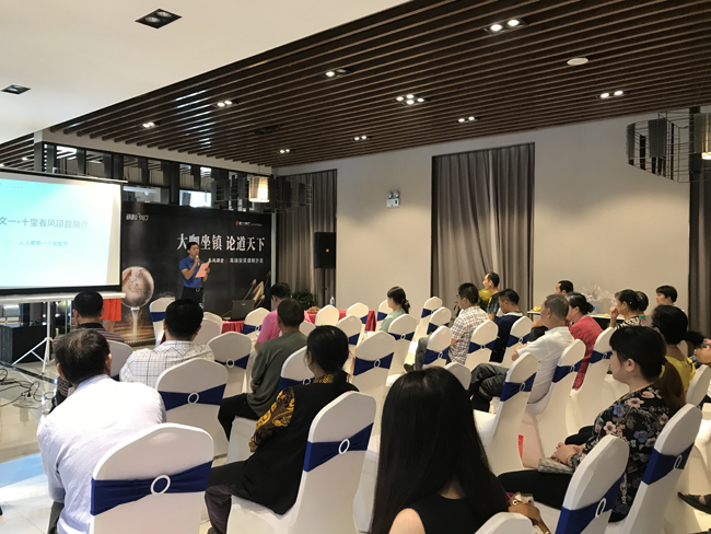 十点钟整,“大咖坐镇 论道天下” 春风课堂之高端投资理财沙龙按时举行。主持人上场做开场白,欢迎并感谢来宾们的到来。随后文一投资控股集团铜陵置业公司总经理助理章文胜先生作了一番精彩的开场词,他表示:在众多投资产品中,房产依然是最靠谱的投资产品。十里春风以其优越的区位、出色的环境及产品业态为人所熟知,对于广大投资理财者来说无论从其目前配套还是发展前景,无疑都是一个非常优越的生活投资选择。随后十里春风置业顾问对项目进行了一番详细的介绍。