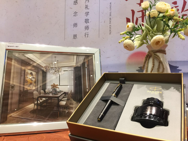 精彩的活动现场,文一·塘溪津门为每一位老师业主送上精美的派克笔一支。希望在往后的岁月里,一直陪伴。而老师们欢笑与钟意,正是文一·塘溪津门最大的期愿与收获。另一方面,对于无暇前来营销中心的老师业主们,我们热情的工作人员,更是与9月10教师节当天登门拜访,将心意定制的派克笔送到老师业主手中。其实,对于津门的老业主而言,登门拜访已然成为一个约定。每逢重要节日,诸多的业主朋友们都会在开门的瞬间,收到津门的定制礼物。