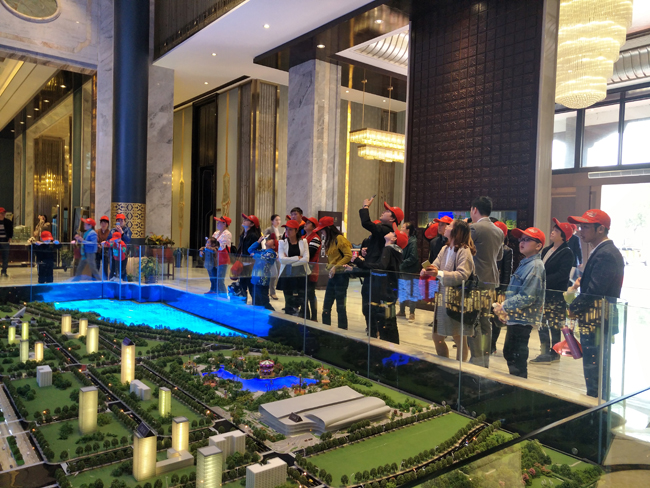 文一·塘溪津门被选作了本次行程的第一站。文一塘溪津门总占地700亩,总建面约125万方,总投资逾150亿。安徽省内最大圆形穹顶天幕系统令各位准业主们啧啧称奇,安徽本土文化与皖人文化记忆与现代生活的完美融合风格,让大家感受到了城市文化会客厅名副其实的魅力。