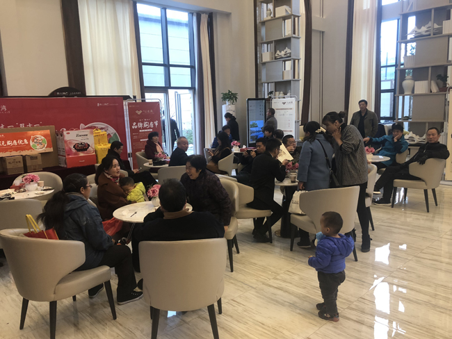 下午三点不到,文一·云水湾营销中心早已宾客满座,现场不仅为大家准备了精致的美味冷餐,供大家休憩时品鉴,琳琅满目的千元家电,更是第一时间就吸引了每位新老客户的眼球。