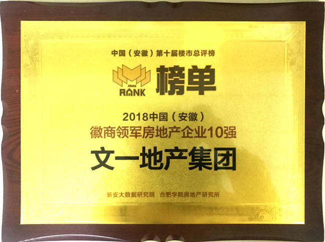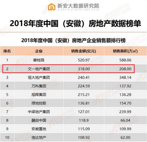 1月9日,中国(安徽)第十届楼市总评榜暨年度榜单发布盛典在合肥盛大启幕,安徽地产界大咖、专家学者、主流媒体齐聚一堂,共同见证荣耀时刻。文一地产以318亿元销售金额位居2018年度安徽房地产企业销售额排行榜第2位,荣膺2018中国(安徽)徽商领军房企10强首位,拿地金额近30亿元,位居参评房企前列。同时,文一房地产集团总裁韦勇获评“2018安徽地产杰出人物”。