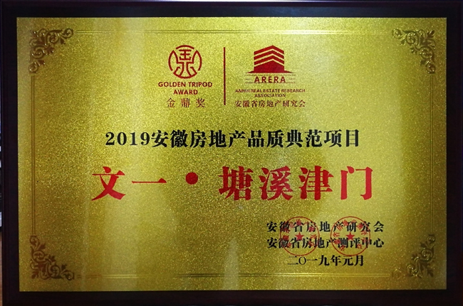 (文一·塘溪津门获评2019安徽房地产品质典范楼盘)