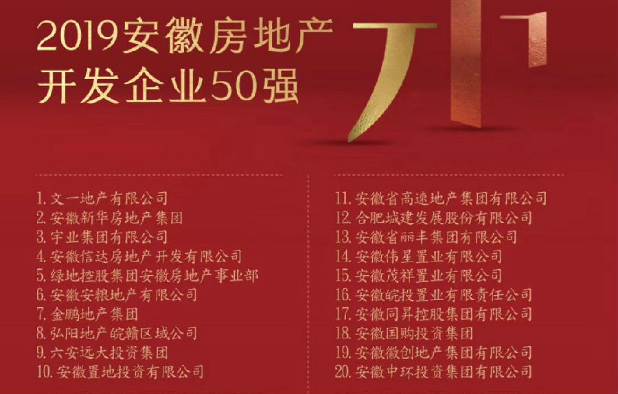 (文一地产荣登2019安徽房地产开发企业10强首位)