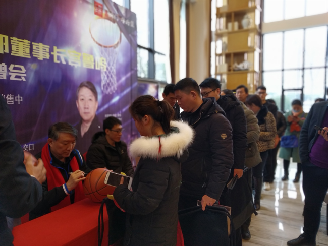 本次颍上站业主签赠会活动,不仅是颍上众多爱好篮球的朋友与偶像的一次亲密邂逅,更是近距离目睹这位传奇人物,亲密接触的难得机会。 上午10点半,宫鲁鸣教练一行抵达签赠会现场,亲切问候众多参与活动的球迷业主,广大球迷业主热情欢迎,兴奋不已,纷纷起立前往活动区有序排队等候活动开始。