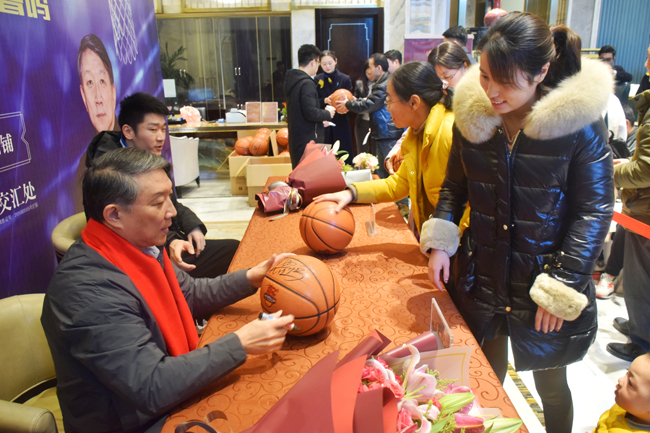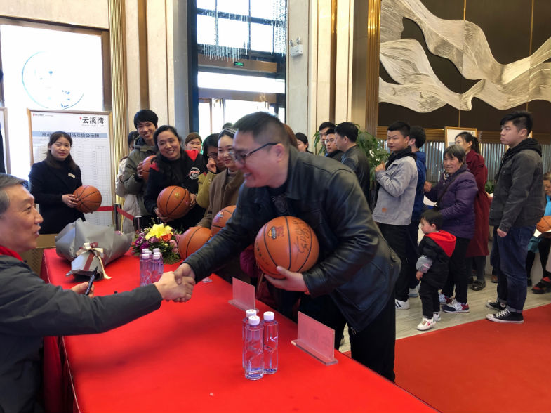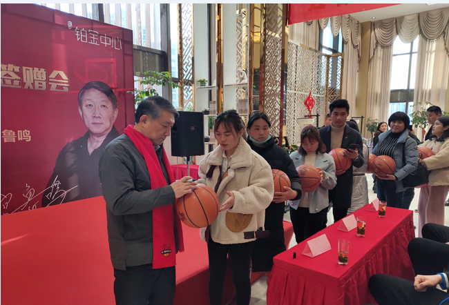 随后就是本次活动的重点环节,受邀的金牌业主均得到一个文一篮球俱乐部比赛篮球,并且现场获得宫鲁鸣先生的亲笔签名,业主朋友们兴奋不已。