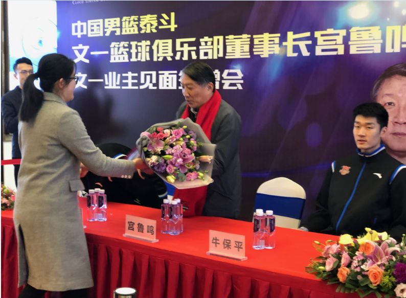 下午2时30分,宫指导携球员代表牛保平和牛保顺抵达签赠会现场,瞬间掀起热潮。现场还有球迷自发上台为宫指导献花,现场一片欢腾。