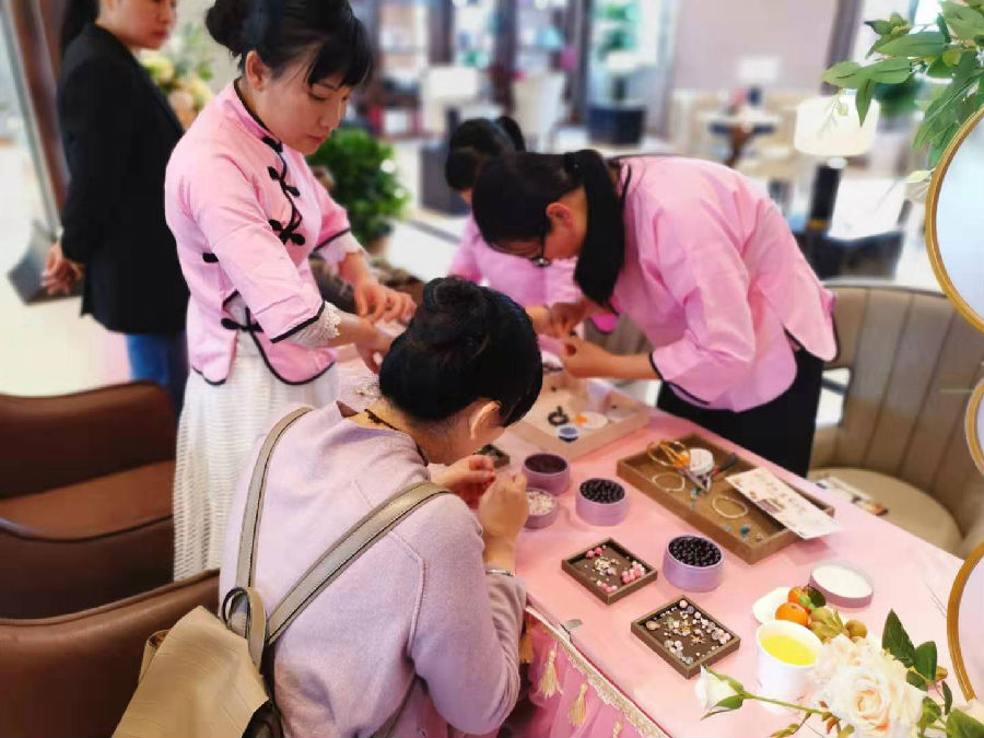 3月16日,文一·十里春风准备了精美的手链手作课程,在专业手工艺老师的教授下,来宾们亲手制作精美的手链。