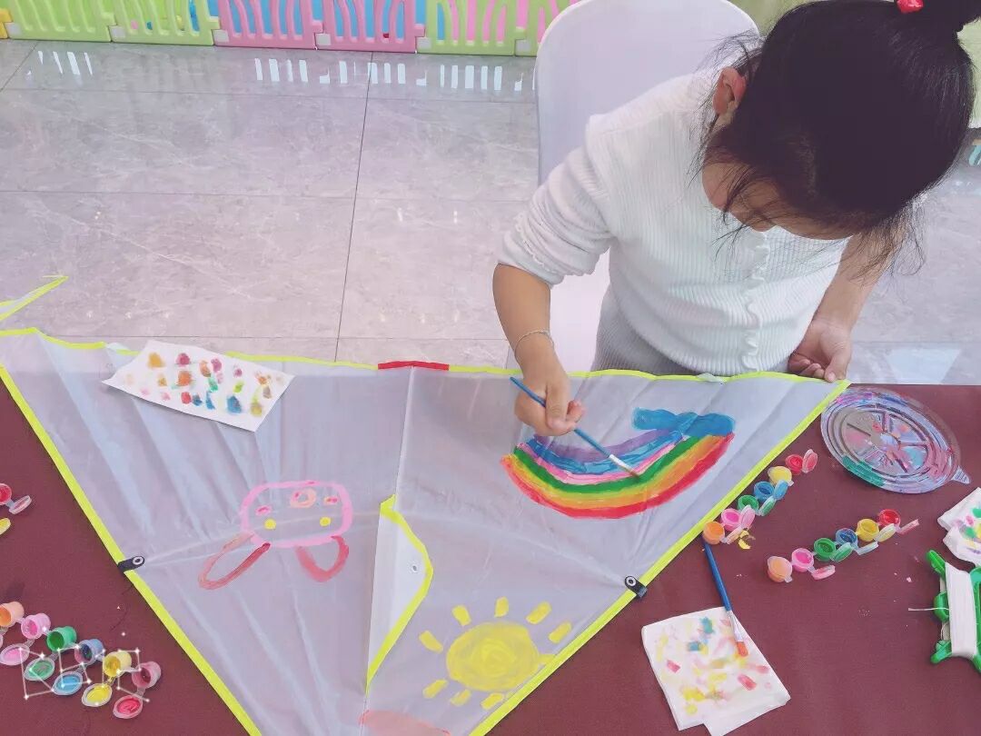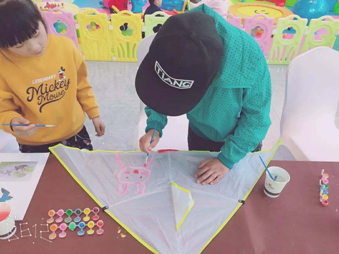 在老师与家长的指导下,小朋友们纷纷把自己奇思妙想在风筝上描绘出来。每个小朋友都在很用心的进行着自己的创作,画笔是他们的工具,风筝是他们传达情感的载体,风筝上一幅幅生动形象的图案则是各位小朋友们心中五彩斑斓的世界的体现。