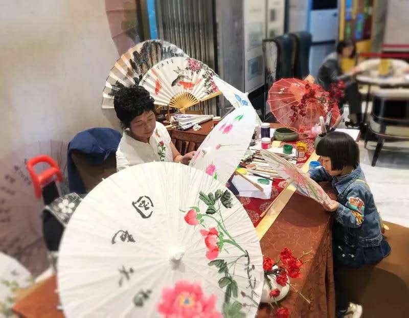 油纸伞是中国传统工艺品之一,客家方言中,“油纸”与“有子”谐音,故客家女性婚嫁时,女方通常会以两把纸伞为嫁妆,含“早生贵子”的意思;“伞”的正体字“伞”字里有五个人字,象征着多子多孙,伞面张开后形成圆形,预祝新人生活幸福圆满。 油纸伞所传承的,不是一种技艺,而是温度、情感与关于烟雨江南的浪漫想象,那是钢丝尼龙伞永远无法赋予的。 4月20日,文一·塘溪津门举办“古法津传,匠意伞绘”油纸伞手绘活动,和大家一起品鉴国家级非文化遗产的魅力。活动现场,来了许多新老面孔,每个人都期待亲手描绘一把属于的油纸伞,想象伞下的姑娘。将水墨浸染,让美丽纷繁的图案,呈于油纸伞上,或轻描淡写,或浓墨重彩,绘出自己的童真童趣,和对生活的美好期待。