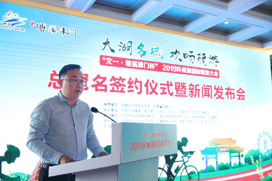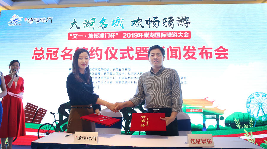 大湖名城,风帆正举;创新高地,活力迸发。4月25日,“文一·塘溪津门杯”2019环巢湖国际骑游大会新闻发布会暨总冠名签约仪式在文一·塘溪津门项目展示中心成功举办。一直以来,文一·塘溪津门积极响应全民运动、绿色生活热潮,为合肥体育事业的发展贡献自己的力量。