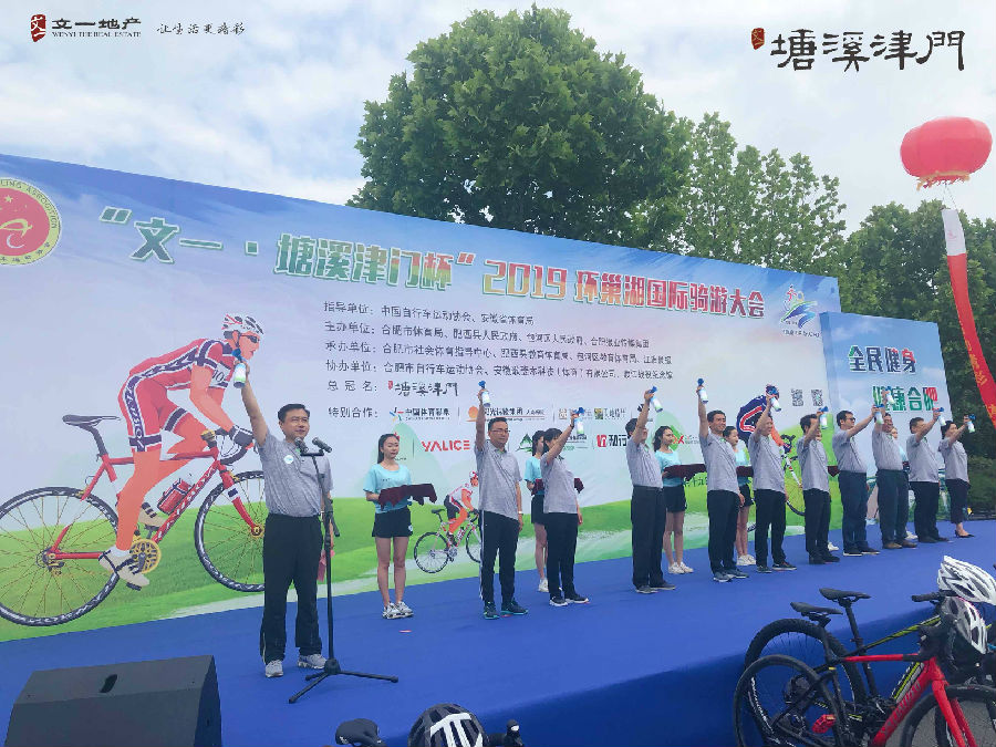 巢湖五月烟波浩渺,揽湖风入怀,千骑乘风驰行,共鉴骑游盛会。5月19日上午,“文一·塘溪津门杯”2019环巢湖国际骑游大会在壮丽的渡江战役纪念馆前举行盛大的开幕式。本次活动由合肥市体育局、肥西县人民政府、包河区人民政府、合肥报业传媒集团主办,文一·塘溪津门全程总冠名。