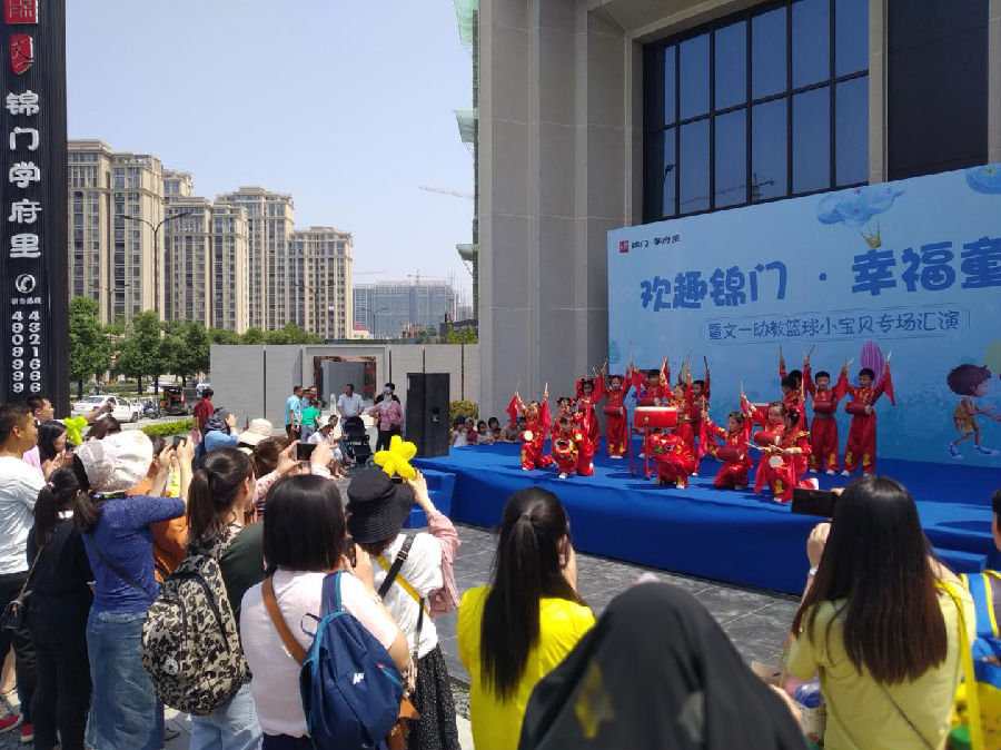 风轻无雨,骄阳炙烤着大地。由文一教育主办的文一幼教篮球小宝贝专场汇演活动于6月2日上午在文一·锦门学府里营销中心前广场精彩开演。众多业主家人早早地便来到现场等候,只为目睹篮球小宝贝们的风采。经过近三个小时的车程,上午10时许,文一幼教一行抵达达营销中心,众多文一幼教篮球小宝贝有序下车、队列整齐的往营销中心内走来,活泼可爱的姿态纷纷吸引了现场众多业主朋友的关注,同时也让我们更加期待接下来的精彩节目表演。