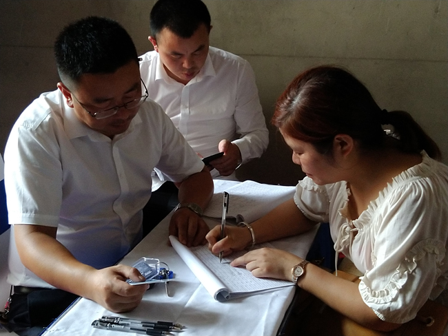 上午8点,早已有业主按照约定好的时间陆续来到交房现场办理交房手续。在客户等候区,前来办理手续的业主络绎不绝,他们有序等候。工作人员热情细致地为业主介绍交房工作的相关细节,耐心地引导业主办理相关手续,从权证文件的签署、物业服务的办理,再到手续完成后将钥匙郑重交到业主手中。