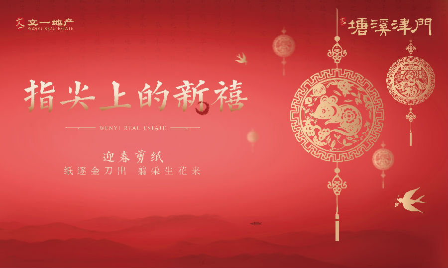纸逐金刀出,翦采生花来。为迎接2020年金鼠佳年,怀着对新一年的美好憧憬和祝福,1月1日元旦当天,文一·塘溪津门举办了一场极赋年味与传统工艺之美的窗花剪纸活动。特邀而来的嘉宾们欢聚塘溪津门营销中心内,一张张火红薄纸、一把把锃亮剪刀,享受指上趣味的同时,更在相互探讨与学习氛围中,了解中国源远流长的剪纸艺术文化精髓。