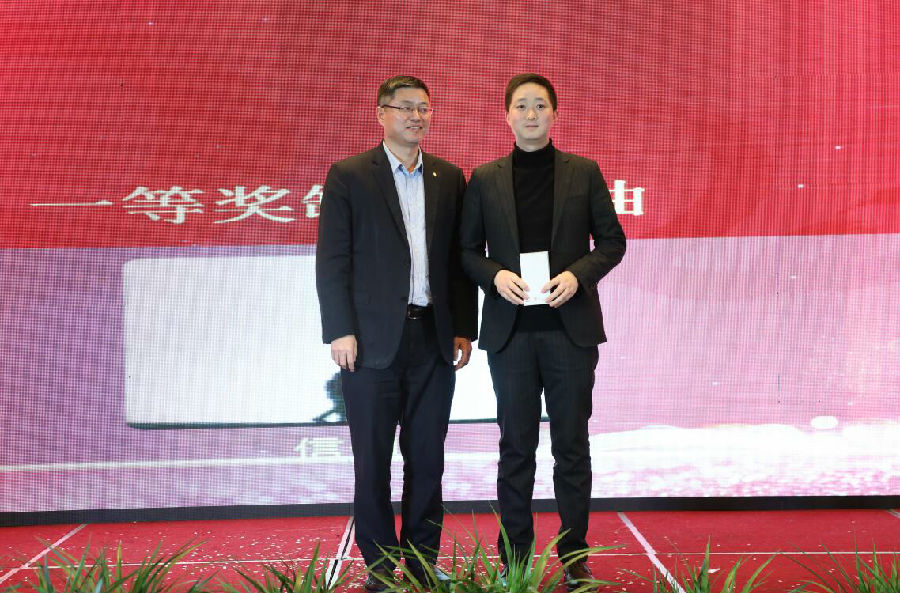 (文一集团副董事长、地产集团总裁韦勇为一等奖颁奖)