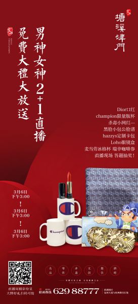 相较于文一·塘溪津门第一次直播,本次招商直播再辟蹊径,用通俗的语言、精准的数据、充分的政策,从“文化最内涵、业态最全面、景观最亮点”三个关键词,帮助大家认识文一·塘溪津门文旅街区。同时,突破传统招商直播格局,增添直播小助手功能,在线回答直播间观众问题。本次直播,还增设答题送礼环节,“全球高端化妆品免税店—GDFS免税店、全国顶尖网红咖啡馆—瑞幸咖啡、全球快餐龙头品牌 — 麦当劳、高端英伦时尚服饰品牌—Hazzy、国际潮牌风向标—Champion、国家级国学动漫体验中心— 安徽樱艺缘文化传播有限公司”特邀赞助,为直播间观众带来劲爆好礼,既帮助客户进行品牌宣传,又为直播间观众带来Dior口红套装、Champion定制水杯、Hazzys定制卡包、黑脸大包公DVD定制光盘、瑞幸咖啡券、麦当劳定制礼品Hello kitty冰格杯等精美礼物!