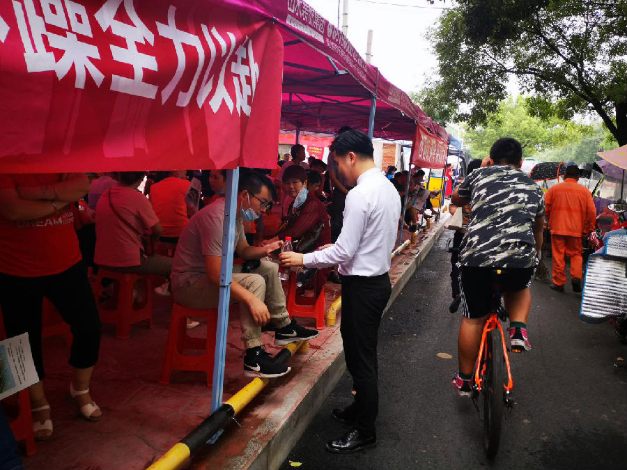 等到考生们进入考场后,考场外的家长们依然守候在门外。时逢阴雨天气,文一地产各项目搭建的帐篷位家长们提供了避雨场所,工作人员也及时为家长们送去矿泉水、清凉油、纸巾和扇子等用品,同时,工作人员也通过闲谈家常缓解家长们的紧张情绪。
