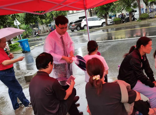 恶劣天气之下,文一地产各项目爱心助考的工作人员们克服暴雨带来的不便与困难,用实际行动服务中考,为广大考生和家长们们送去一份份清凉与温情。