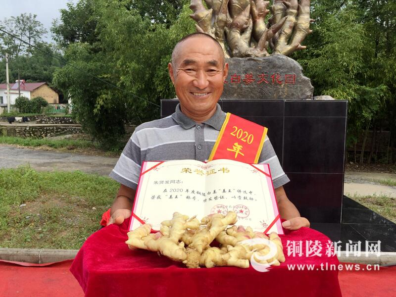 活动现场,义安区区长姚贵平为天门“姜王”颁奖。状若佛手、姜重1071克,这也是姜农朱贤发第二次荣获“姜王”称号。提及种姜心得,朱贤发开心地表示,如今他可是科学种姜,“今年我规模化种植铜陵白姜100亩,有省里的专家指导,铜陵白姜的品质、产量都有了保障提升。”