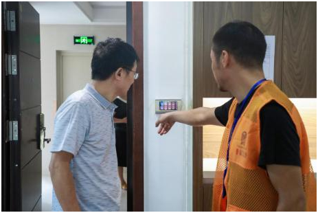 随后业主们接过新家的钥匙,在专业验房师的陪同下,业主们携家属一起步入新家,仔细查验房间各个细节。