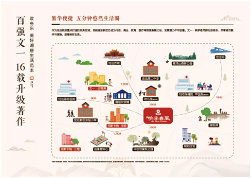 文一·桃李春风坐落于政务东繁华城芯,周边商圈、医院、市政等城市配套一应俱全,另外,项目自带自然属性光环,整个社区紧邻28万方丰收坝湖畔,是主城难得的湖居筑区。2.0低密生态社区、38.1%的绿地率、最大约62m奢阔楼间距将生活归于低密,为业主带来更多、更好的自然生活之享。