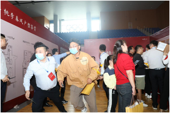 大美湖境,倾城首开。开盘当天一早,定远县体育中心签到处就排起了长队,现场人头攒动、气氛热烈,客户们彼此交谈着,互相分享选房技巧,言语间难掩紧张心情,但以表达出对桃李春风项目的期待。上午8:30,客户基本都已完成签到,内场座无虚席,每个人都迫不及待想要加入今天的抢房大战。因为意向客户的数量远多于首开房源数量,为保证选房的公正、公平,首开盛典采取随机摇号的方式进行选房。