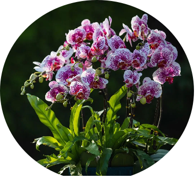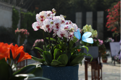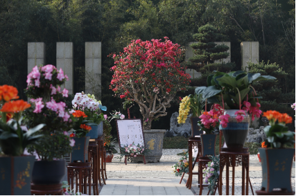 园中,风雅清韵兰花、粉苞宝莲灯、贵妃海棠、红艳杜鹃.. ...数十种几百盆珍稀花卉,竞相绽放,争奇斗艳。