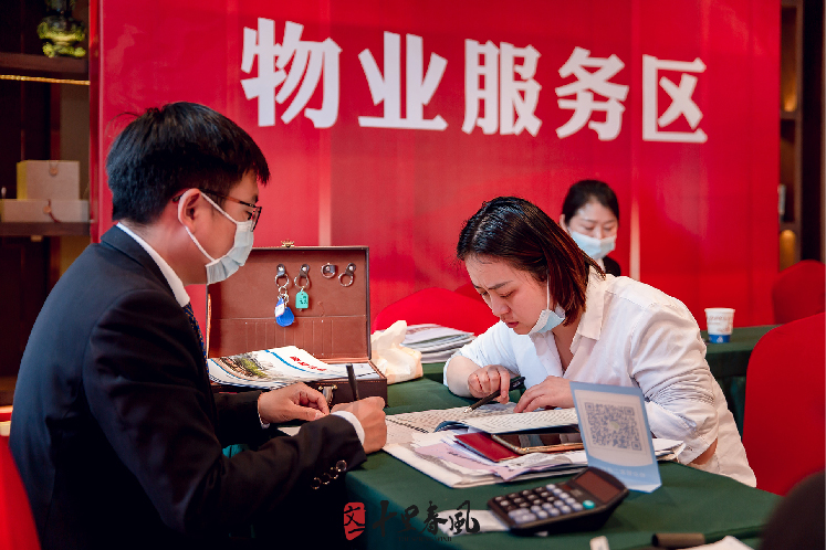 交付现场工作人员有条不紊地办理手续、验房,交付现场秩序井然。