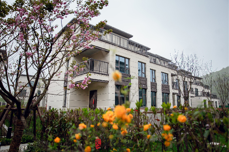 于院墅中,邻友一边交谈入住后的美好愿景,一边沉醉在山水自然和庭院绿意中,满溢喜悦的面容,成为“桃源”靓丽的风景线。