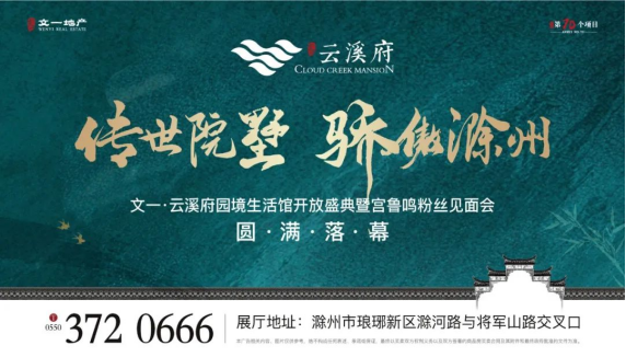 一次匠心与品质的升腾,一次建筑与空间的对话。5月23日,“传世院墅 骄傲滁州”文一·云溪府园境生活馆开放盛典暨宫鲁鸣粉丝见面会圆满落幕。承文一湾系升级之作而来,敬献亭城一座传世人文大宅,初见即为惊艳。
