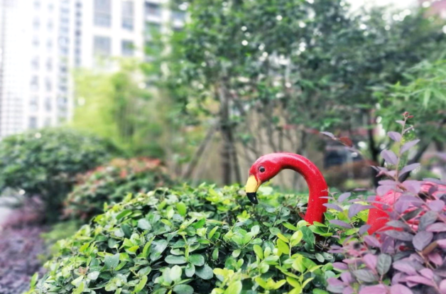 园内径道纵横,每条径道均设有行道树,如中轴两侧就是低矮灌木结合高大乔木,伴随景观水系,缭绕雾气,意境悠远。情此情,怎能不为之驻足观赏,私享这一诗意栖居境界?