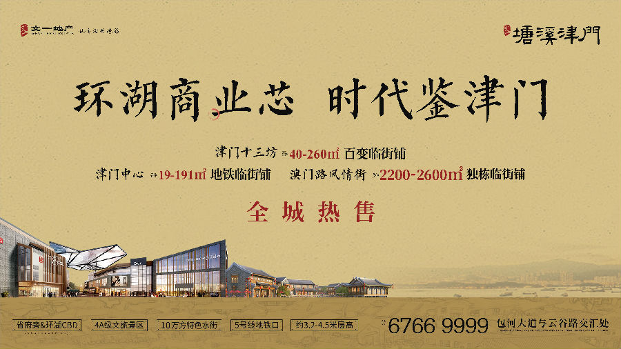文一·塘溪津门量身打造的旗舰商业,更与文旅水街互为整体,横跨丰富产品形态,灵活适应多种不同经营需求,将一站式满足吃喝玩乐购,未来势必聚引万千客流,前景不可估量。