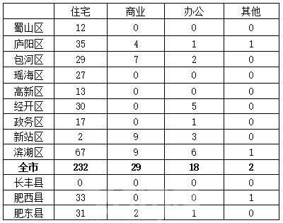 住宅区属销售方面,滨湖区以销售67套的成绩领先于其他板块;其次,庐阳区也完成销售了35套排列第二;经开区也完成销售了30套排列第三位;其他各区属的成交情况分别为包河区29套、瑶海区27套、政务区17套、高新区13套、蜀山区12套、新站区2套。